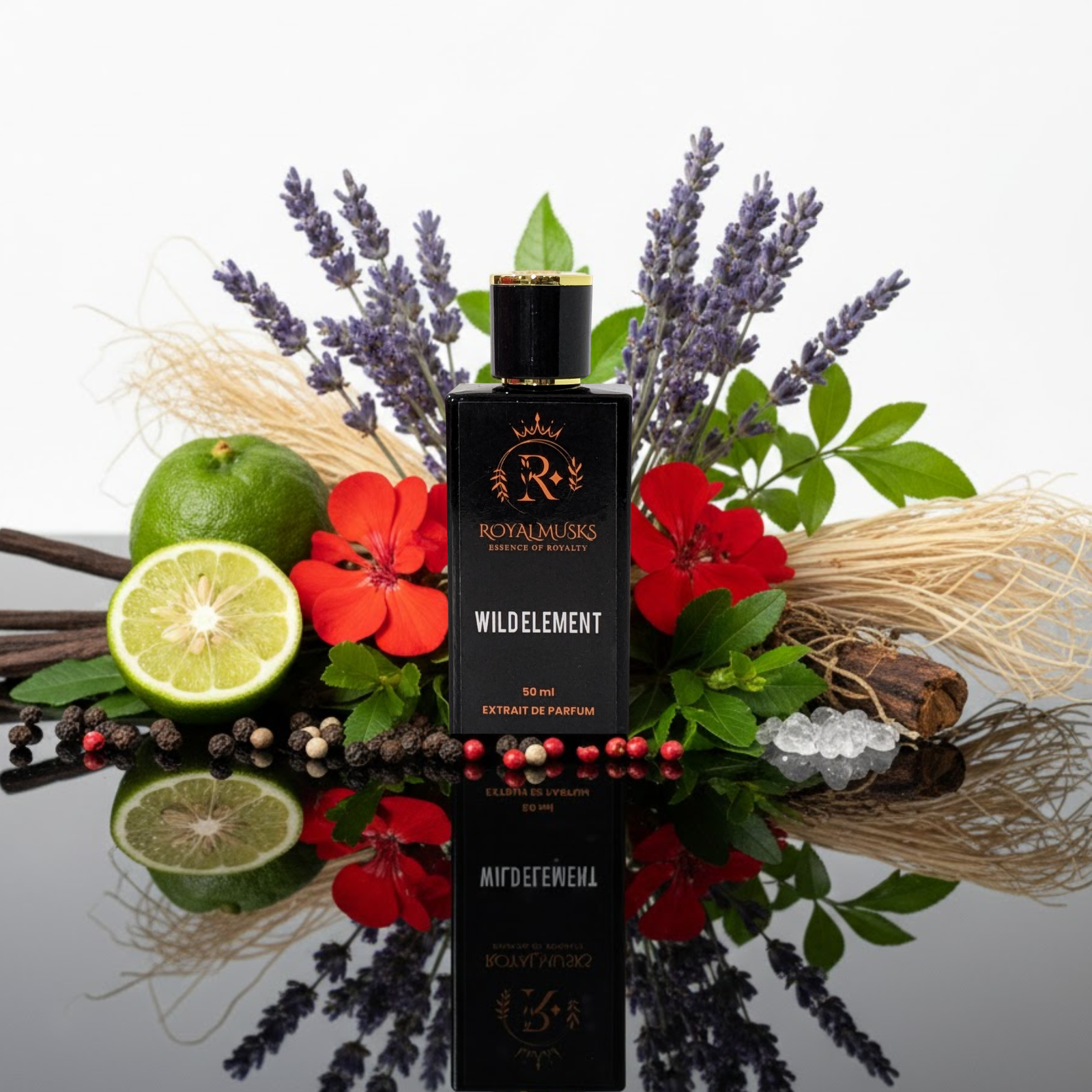 Wild Element opens with a burst of fresh bergamot and spicy pepper, igniting confidence and intensity. The heart brings a refined blend of lavender and geranium with a hint of heat from Sichuan pepper. Settling into a powerful base of ambroxan and earthy vetiver, it leaves behind an unforgettable trail of strength and elegance — perfect for modern men who own their presence.